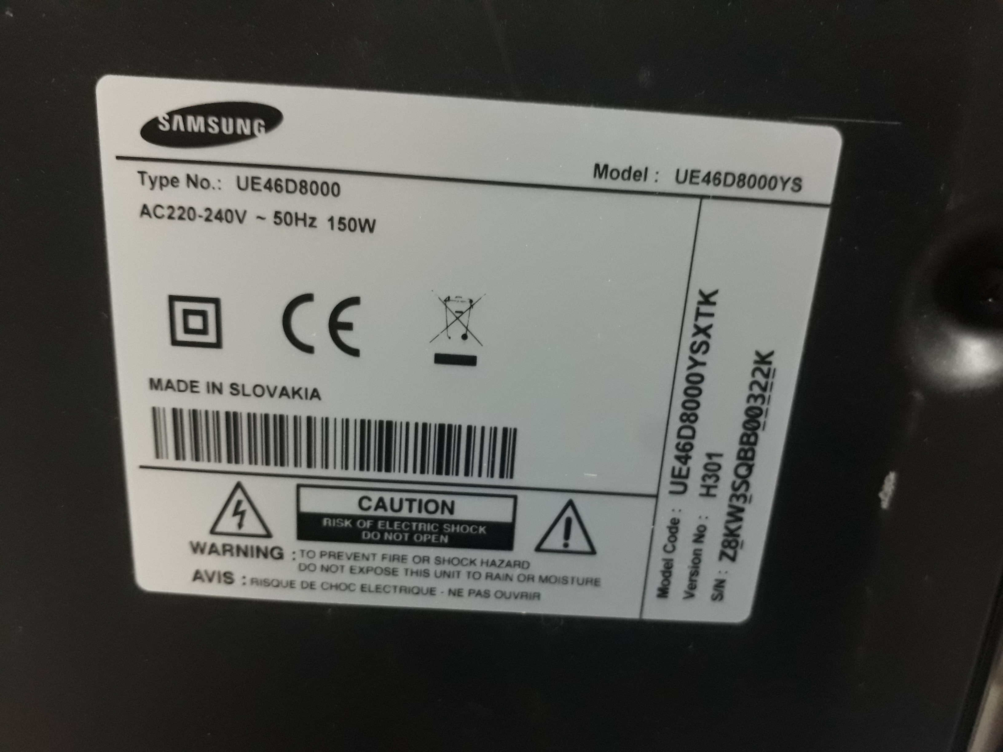 Samsung LED TV Model UE46D8000YS